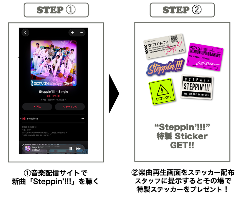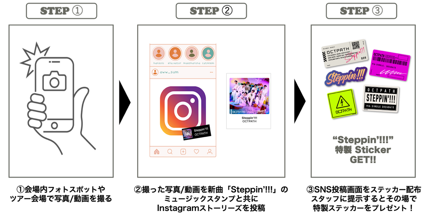 「OCTPATH LIVE 2026 -PATH to Dream-」の開催を記念して、Steppin’!!!オリジナルステッカーが貰えるデジタルキャンペーンの開催が決定!